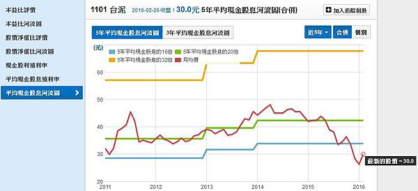 溫國信先生的做法是抓五年的現金股利平均,再用五年的平均股利,設定16倍(便宜價)、20倍(合理價)及32倍(昂貴價)本益比來求得進出場的價位,但歷史本益比是用過去的收益推出來的,屬落後資訊,一般我還會抓預估本益比來決定是否買進,股價跌破16或20倍的本益比,也就是跌到了便宜價或合理價,是否就值得買進?股價一直下跌會不會是經營的警訊,所以才造成貌似有便宜可撿,實際卻是個大地雷的情形發生?我們以台泥(1101)來做例子。Rick Chen 發表在 痞客邦 留言(0) 人氣(2,673)